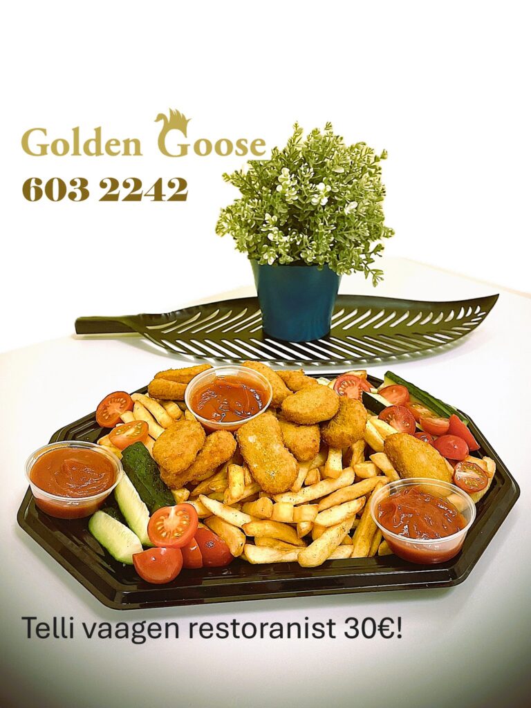 Toitlustus Golden Goosest- saab tellida kohapeal restoranist või telefoni teel.